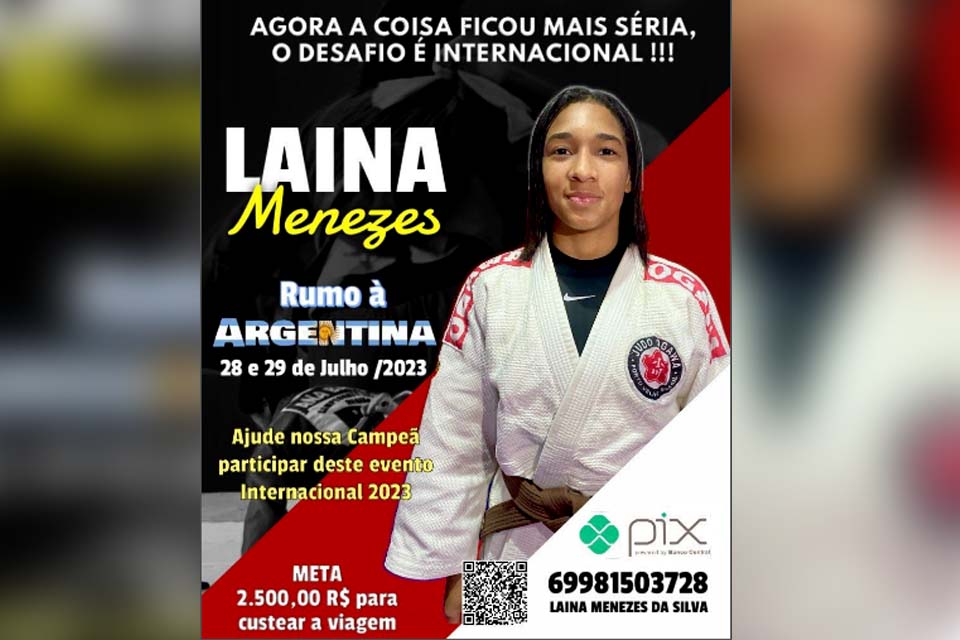 Laina pratica Judô há seis anos e recentemente se tornou Campeã Estadual de Judô Sub-18, lá na cidade de Ouro Preto do Oeste no último dia (20) de maio. Agora ela terá um desafio internacional, irá competir no Torneio “Judo Tierra del Sol 2023”, que será realizado em Formosa, na Argentina.