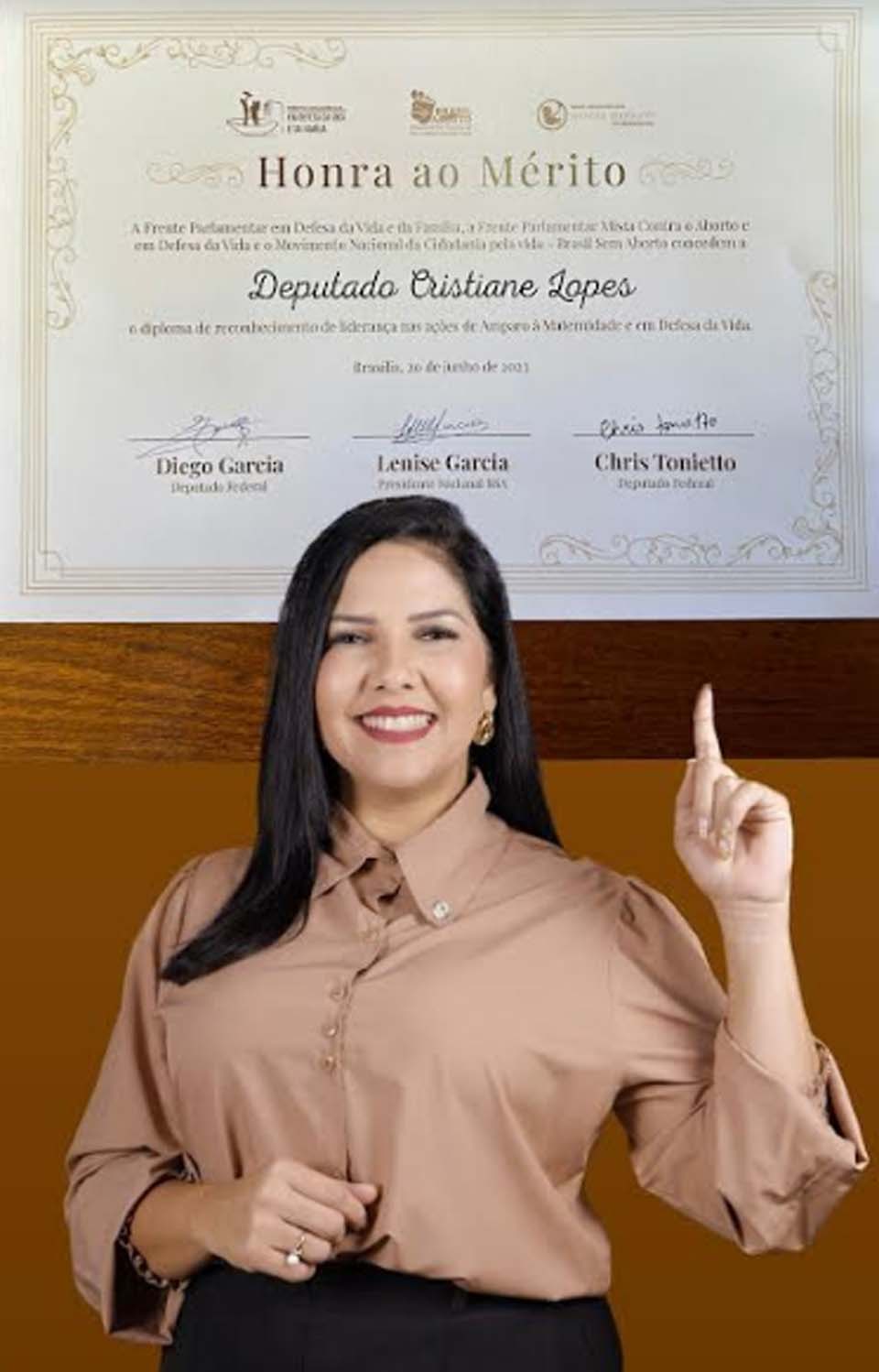 Cristiane Lopes agradece o reconhecimento e destaca que sempre será firme na sua luta contra a legalização do aborto no Brasil. “O aborto fere o dom precioso da vida e coloca em risco a saúde da mãe, que também está vulnerável com a situação. Acredito que a solução para os problemas trazidos pela gravidez indesejada seja a promoção de políticas públicas que ajudem a cuidar do bebê e da mãe tanto na parte física, psicológica e espiritual”, finalizou.
