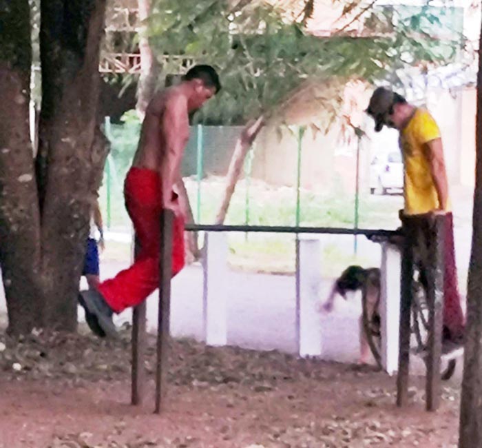 Jeferson Medeiros da Silva, 27 anos, é motorista de aplicativo é um dos adeptos recentes da calistenia. Ele afirma que o mercado de trabalho está cada vez mais exigente e que as pessoas têm cada vez menos tempo. Jeferson conta que começou a praticar a calistenia ao observar alguns jovens se exercitando numa praça perto de sua casa, na zona Sul de Porto Velho/RO.