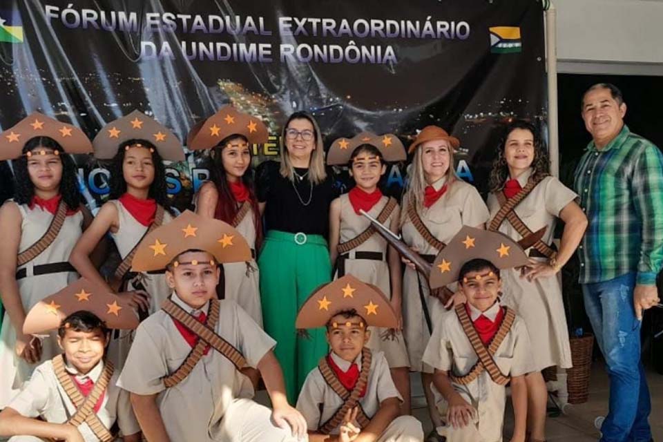 A Escola Municipal Assunta Maria Gianini Favaleça foi destaque em uma emocionante apresentação cultural nordestina. A apresentação da escola abriu o segundo dia do Fórum da União Nacional dos Dirigentes Municipais de Educação (UNDIME), que ocorreu nos dias 29 e 30 de junho, no Centro Cultural Antônio Augusto Neves em Pimenta Bueno. Apresentações como esta refletem o compromisso da escola em proporcionar aos alunos experiências significativas por meio de atividades práticas, tanto dentro quanto fora do ambiente escolar. Os profissionais da educação utilizam metodologias ativas e prazerosas, visando um ensino de qualidade e o desenvolvimento integral dos estudantes.
