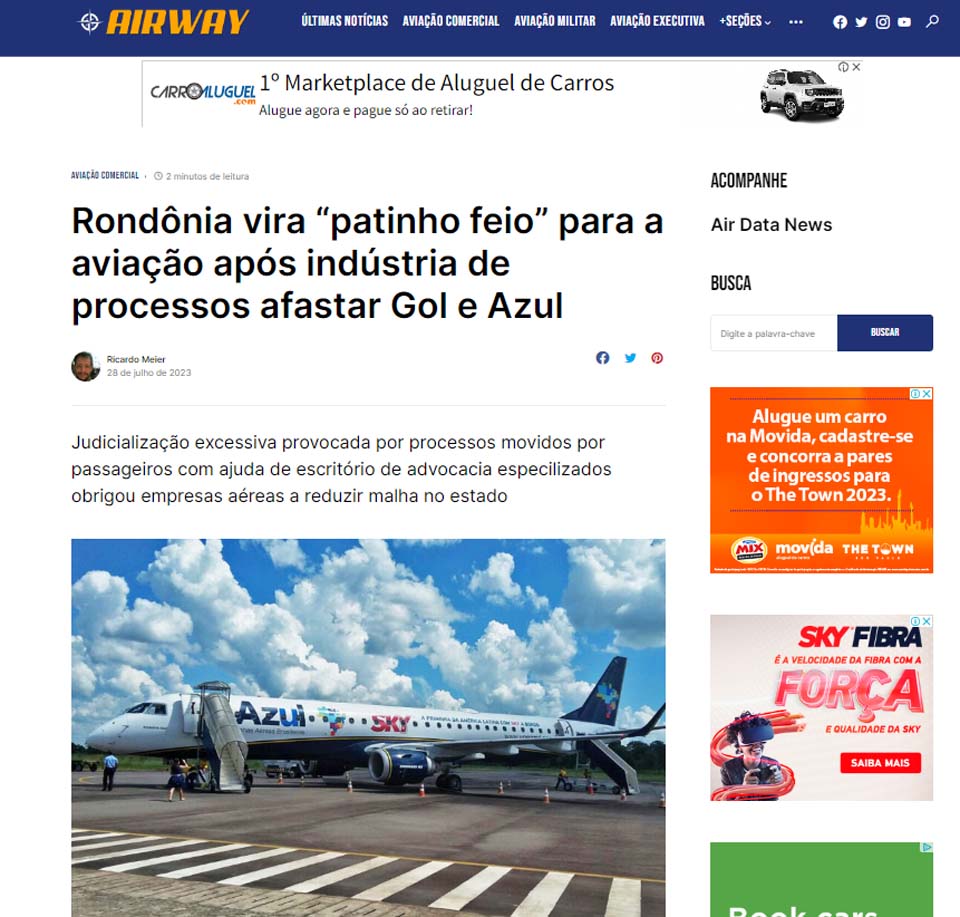 O artigo revelou que, entre janeiro de 2022 e junho de 2023, quase 25 mil ações foram abertas contra as companhias aéreas na região, e dois terços dessas ações envolvem a Azul Linhas Aéreas, que voava para cidades como Manaus, Vilhena e Cuiabá a partir de Porto Velho.