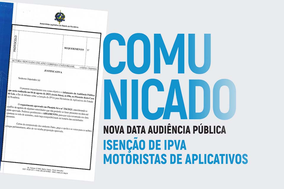 O adiamento foi necessário devido a conflito de agenda de autoridades, que fazem questão de participar do debate e ouvir as necessidades da categoria. Nesta semana foi apresentado requerimento solicitando uma nova data, para o mês de setembro, que em breve será anunciada.