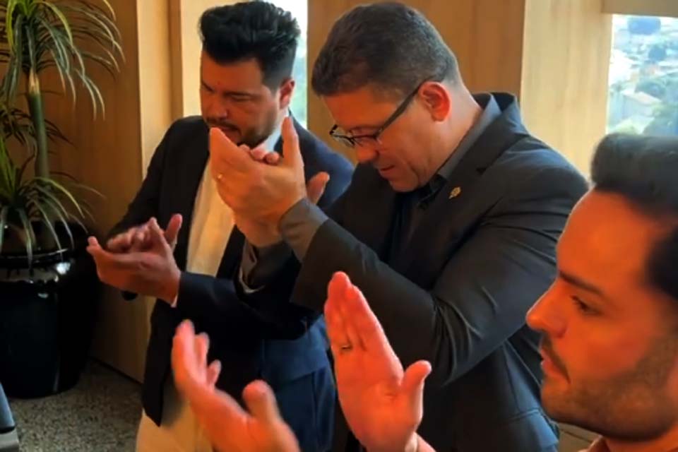 Marcelo Cruz, presidente da ALE/RO; governador Coronel Marcos Rocha; e Júnior Gonçalves, chefe da Casa Civil / Reprodução