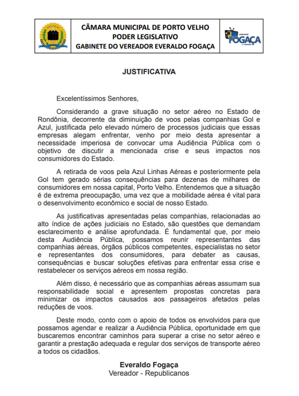 Porto Velho, RO – Na próxima terça-feira, 15, haverá audiência pública na Câmara de Porto Velho a fim de debater a crise no setor aéreo de Rondônia após as empresas Azul e Gol diminuírem ofertas de voo para o estado.
