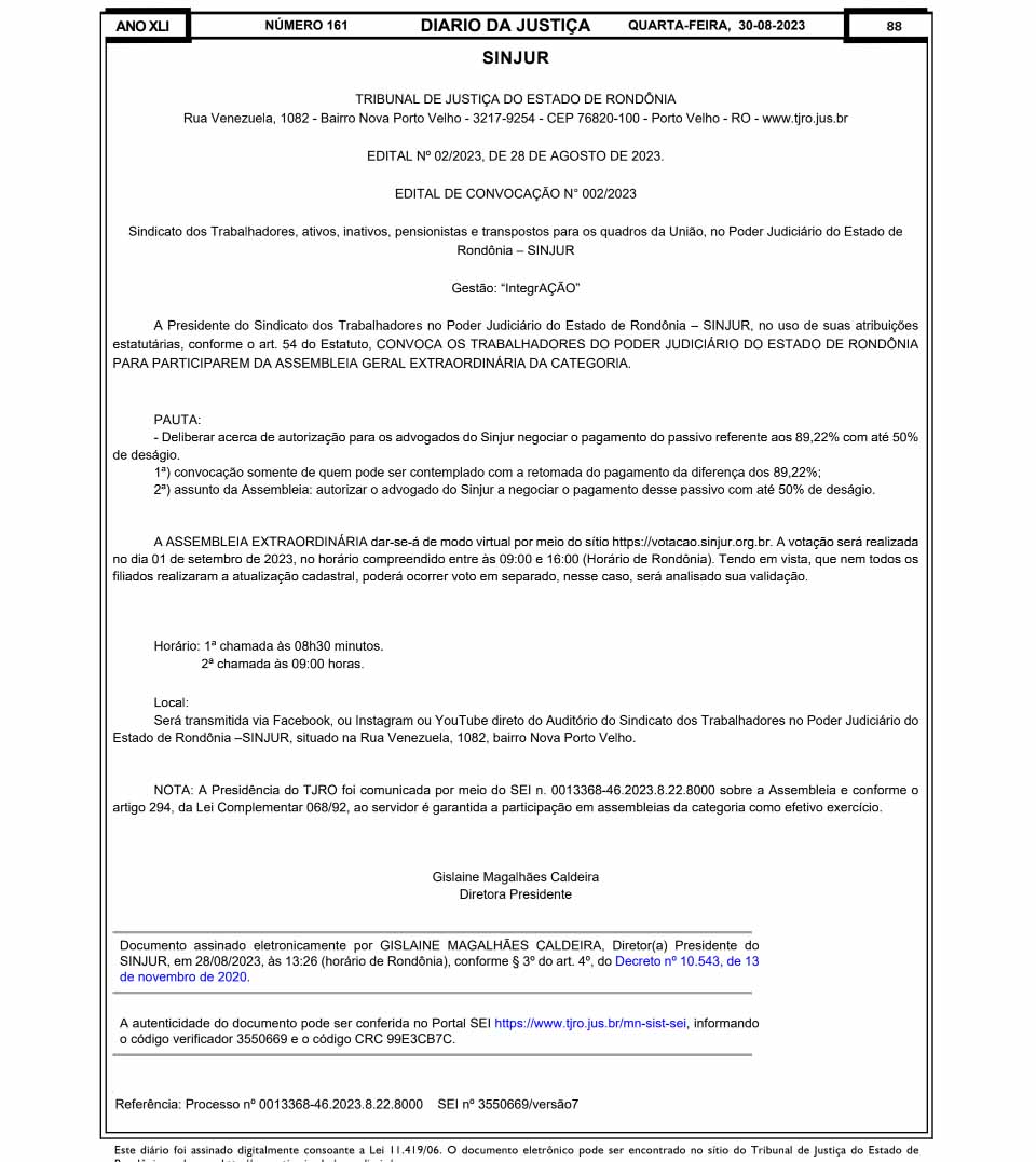 SINJUR - EDITAL DE CONVOCAÇÃO N° 002/2023
