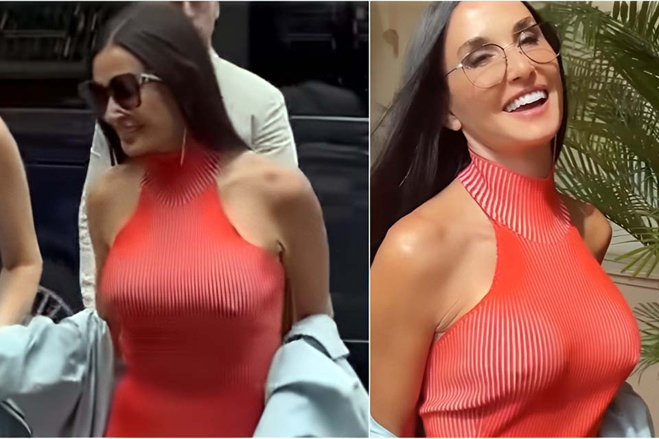 Demi Moore, 60 anos, deu um banho de sensualidade ao usar um vestido vermelho justo para marcar presença na Semana de Moda de Milão, na última quarta-feira, 20.