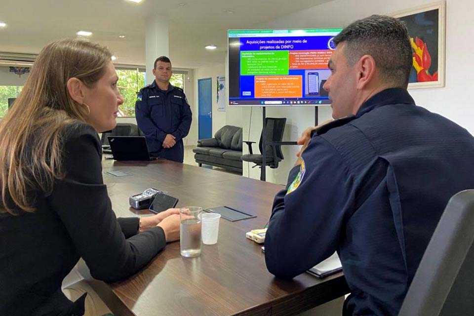 A deputada estadual Gislaine Lebrinha (UNIÃO), visitou o Comando Geral da Polícia Militar de Rondônia, na terça-feira (12/9). O comandante geral Coronel PM Regis Wellington Braguin e o subcomandante Coronel PM Glauber Ilton de Souza Souto recepcionaram a parlamentar e apresentaram as ações da PM no combate à violência contra a mulher.
