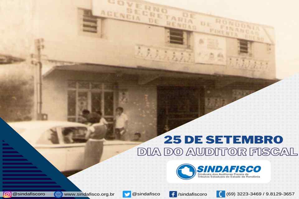 Por isso, neste dia 25 de Setembro, o Sindicato dos Auditores Fiscais de Tributos de Rondônia - SINDAFISCO aproveita para reforçar nosso compromisso com todos os Auditores Fiscais, com a sociedade de Rondônia, buscando uma tributação mais justa, valorização da classe fiscal tributária e um retorno tributário satisfatório para todo o Estado.