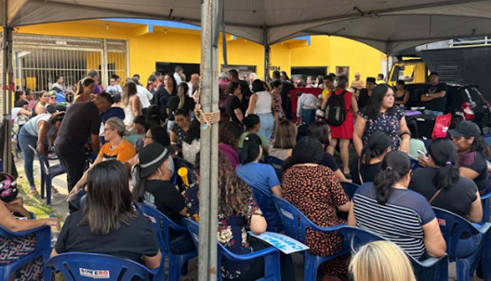 No dia 06/09, foi realizada uma assembleia em frente ao prédio da Semed. A categoria pode fazer manifestações e denunciar a postura adotada pelo executivo municipal. Apesar disso, a secretária Gláucia Negreiros não compareceu ao movimento para dialogar com os/as trabalhadores/as em educação.
