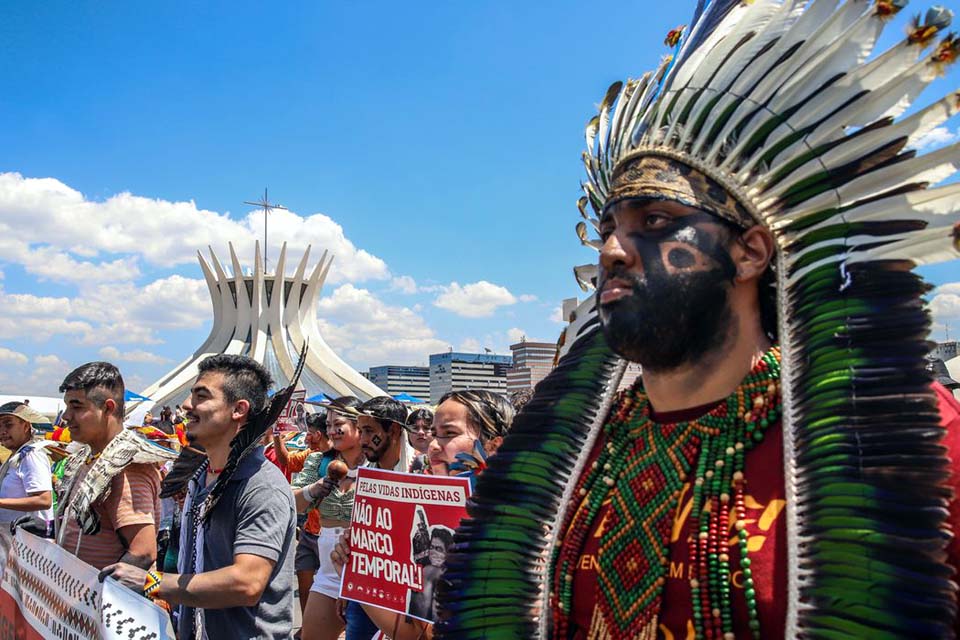 Para acompanhar o julgamento no STF, indígenas estão mobilizados em Brasília. Eles também se manifestam contra a tentativa do Senado de legalizar o marco temporal.