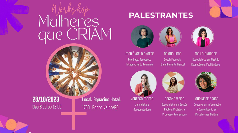 É uma oportunidade única de compreender o feminino para se reposicionar em relação à vida pessoal e profissional. O workshop Mulheres que CRIAM é um evento all inclusive e será realizado no dia 28 de outubro de 2023, no Aquarius Selva Hotel, das 8h às 18h, e terá a seguinte programação: