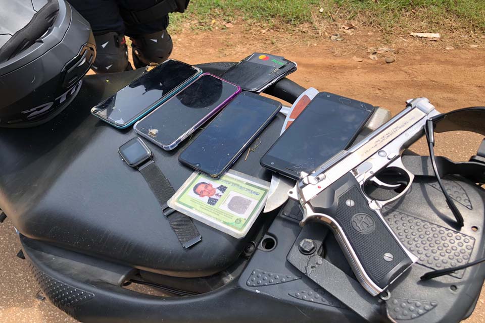 Durante a fuga o suspeito fez várias manobras arriscadas como passar em alta velocidade nas ruas preferenciais chegando ao ponto de arriscar a própria vida e no final da JK no início da rua Gerônimo Santana, ele perdeu o controle da direção da moto e atingiu uma lixeira e o muro de uma residência, sendo abordado e durante revista foi localizado a pistola de Airsoft e várias aparelhos celulares que ele havia roubado minutos antes.