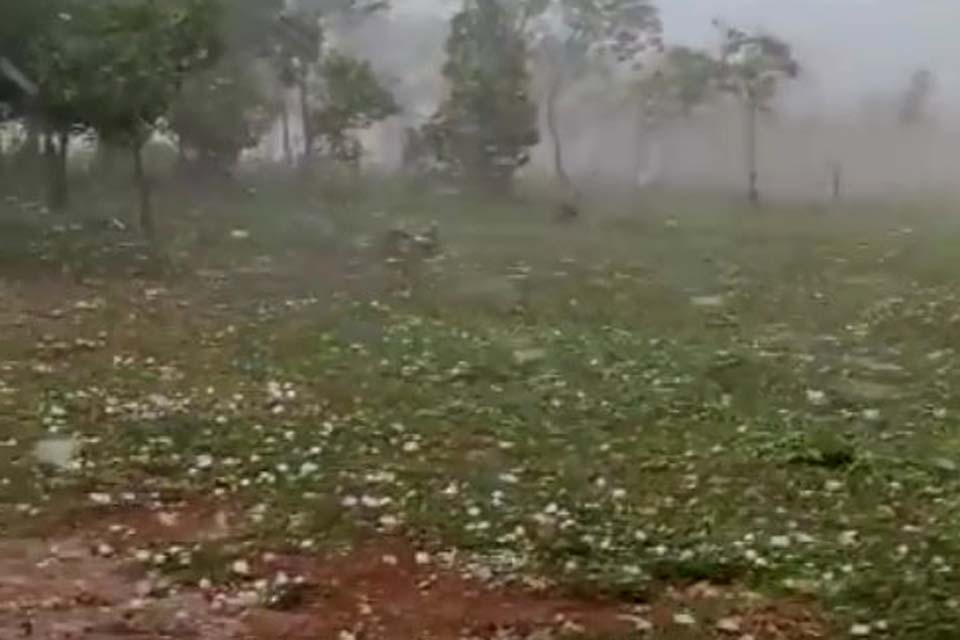 Na cidade em alguns bairros as pedras de gelo caíram com maior intensidade, na zona rural um registro na 603 indica pedras maiores.