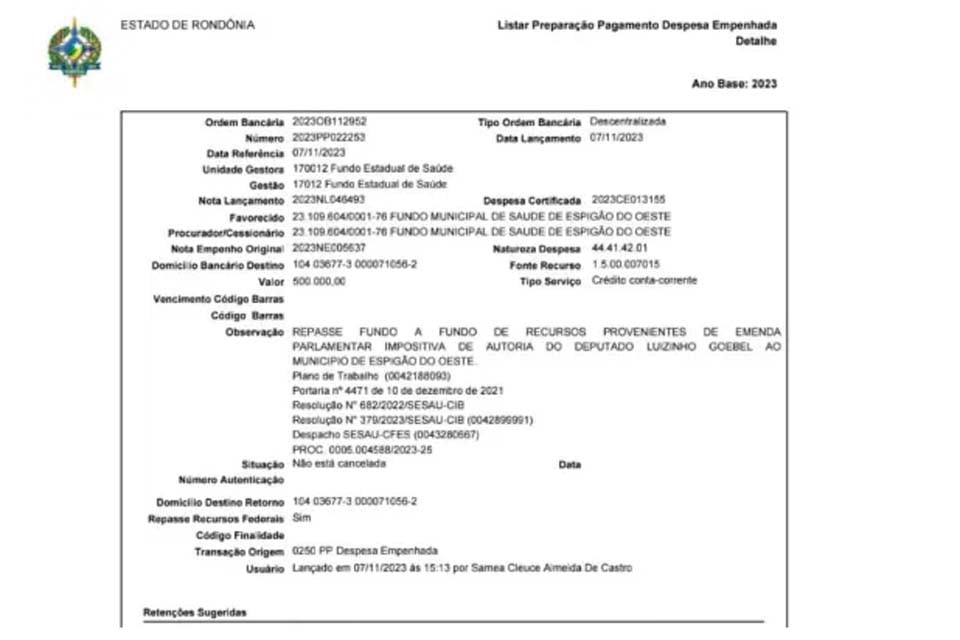 Segundo a vereadora Delker Nobre, o deputado Luizinho Goebel é um grande parceiro de Espigão, no mês de setembro fez a entrega de uma moderna UTI para atender a nossa saúde e, agora novamente atende com a liberação do dinheiro para a compra do aparelho de Raio X.