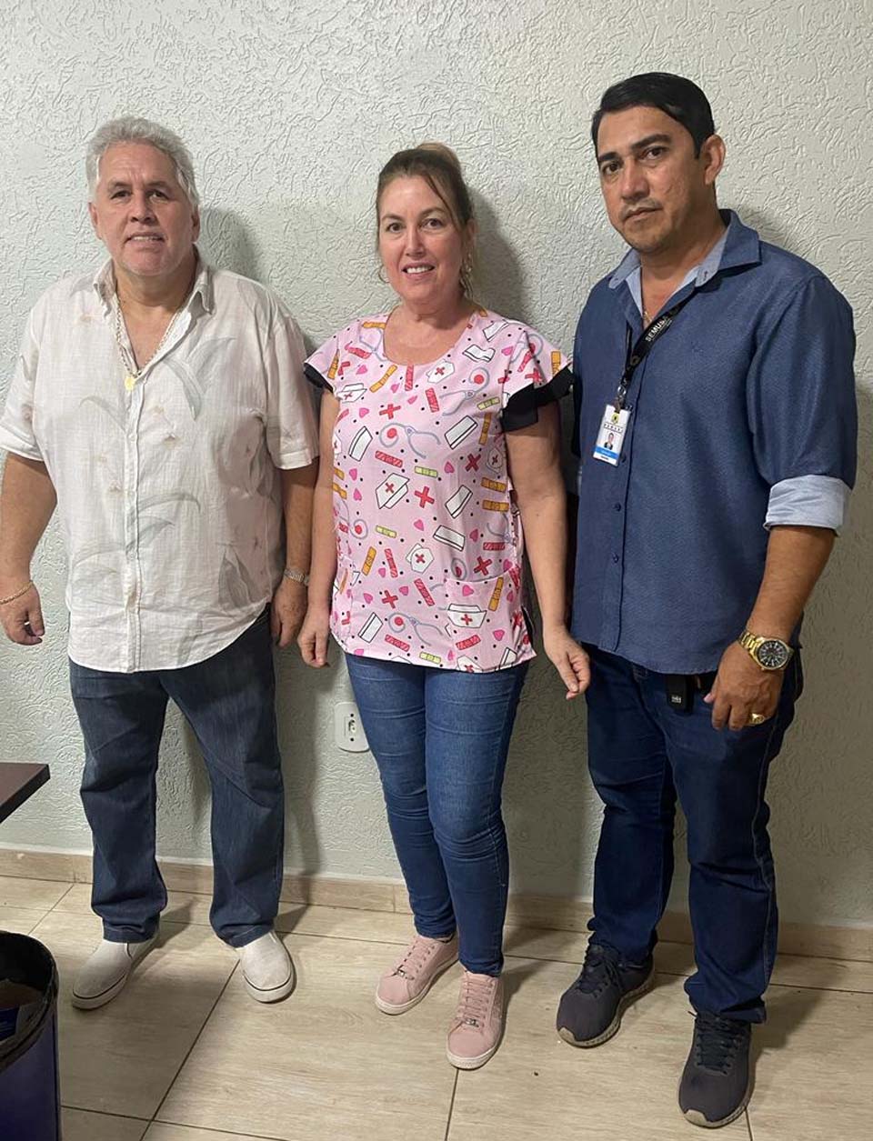 Ronaldo Baylão, chefe de Gabinete do vereador Edwilson Negreiros; Valéria França, vacinadora; e Auricélio Ferreira, diretor da unidade de Saúde
