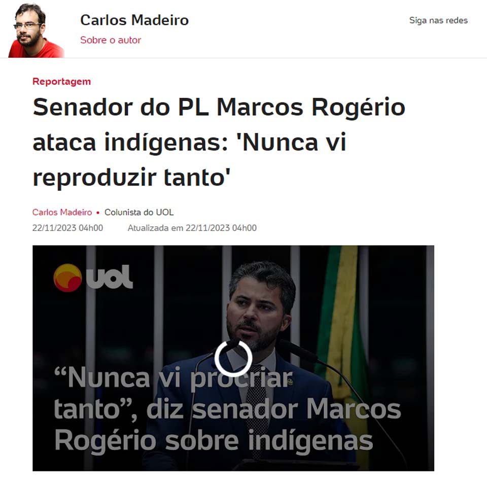Porto Velho, RO – De acordo com fontes da mídia nacional, uma matéria veiculada especificamente pelo Portal UOL revelou que o senador Marcos Rogério (PL-RO), em um discurso dirigido a produtores rurais no último sábado (18) em São Francisco do Guaporé (RO), criticou o processo de demarcação de terras indígenas e ironizou o notável crescimento da população indígena no Brasil.
