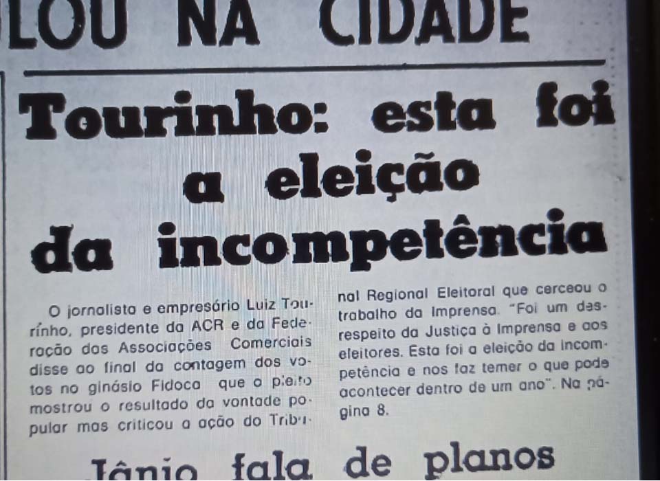 1985 – A eleição para prefeito (PVh), vencida por Jerônimo Santana, foi “a eleição da incompetência” (do TRE) disse o empresário Luiz Tourinho, afirmando temer “o que pode acontecer em 1982”.