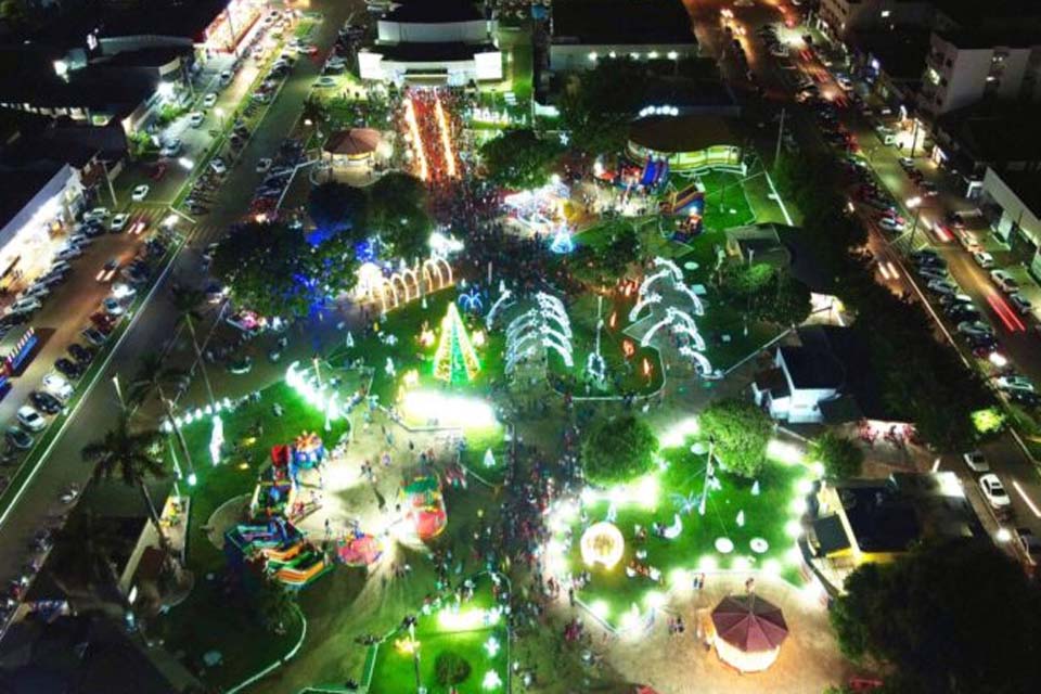 Muita gente compareceu na Praça Durvalino de Oliveira para o acender das luzes do Natal de Luz 2023 em Rolim de Moura na noite do último sábado, 18. O evento realizado pela Prefeitura, foi coordenado pela Secretária de Planejamento, Kelly Naahmara em parceria com o comércio local e outras secretarias do município.