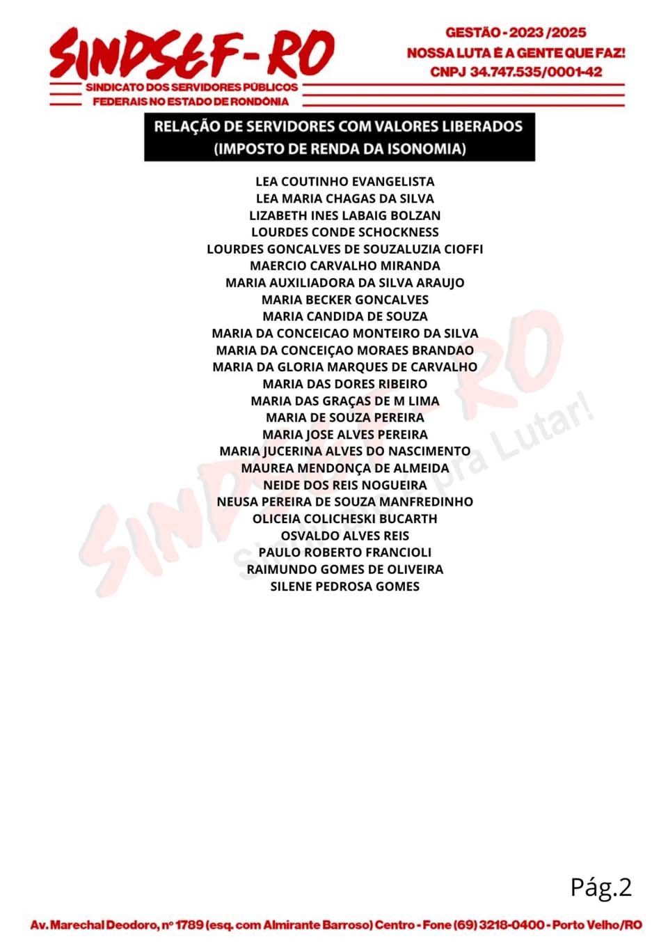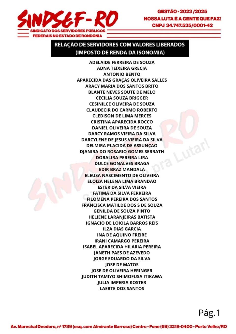 SINDSEF-RO divulga lista de professores com pagamento liberado nesta terça-feira, dia 1 de novembro