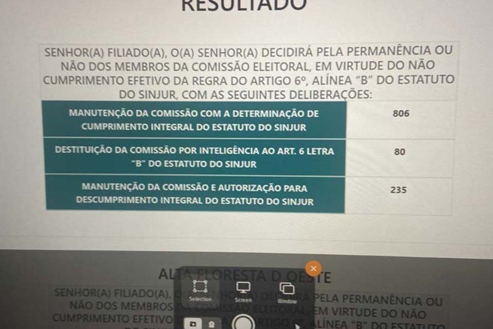Assim, para fins de resolução desse imbróglio, a Comissão eleitoral se reunirá às 15 h de hoje, terça-feira, 07, e a diretoria do SINJUR aguarda as informações decorrentes dessa reunião para a tomada de providências que o caso requer.