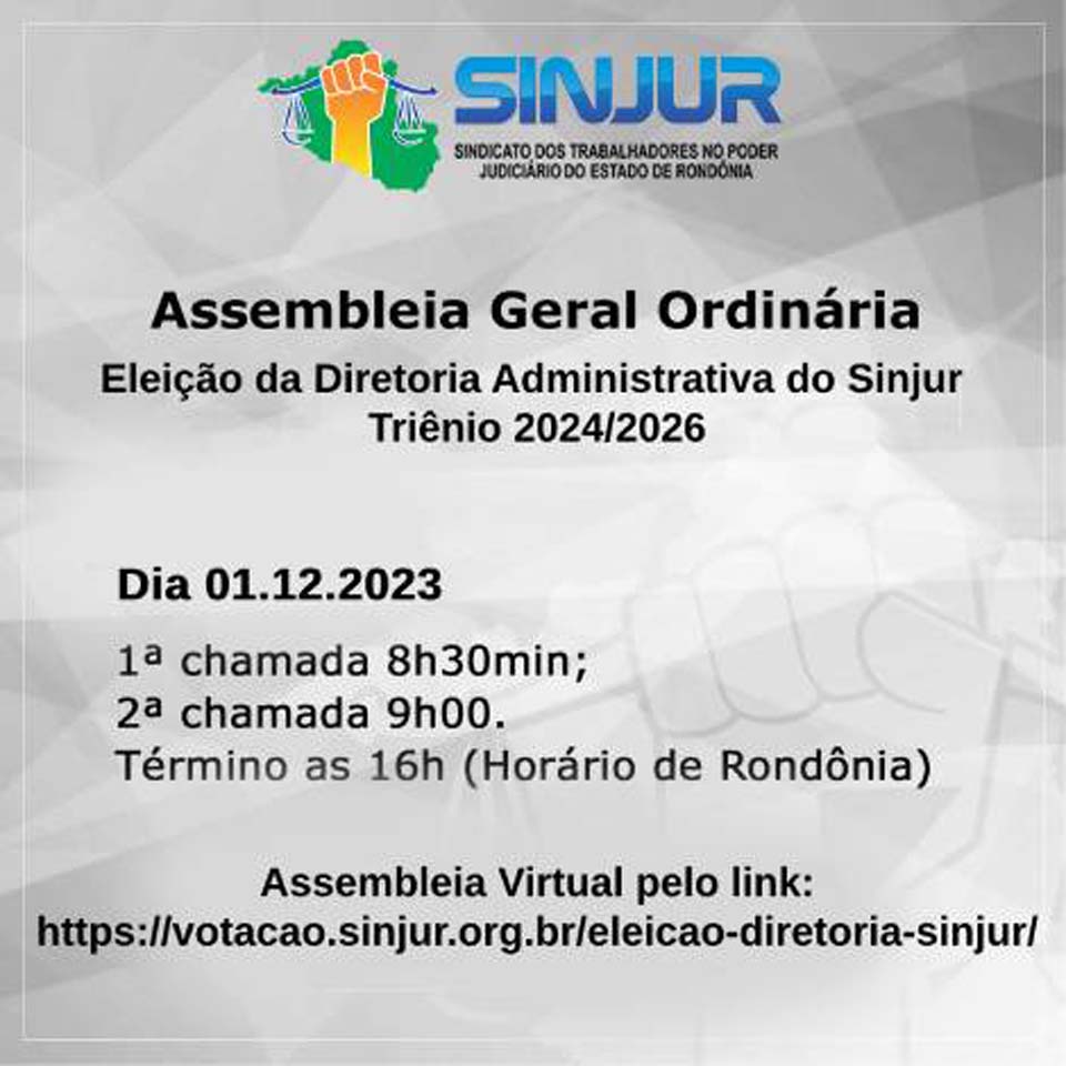 Assembleia Virtual pelo link: https://votacao.sinjur.org.br/eleicao-diretoria-sinjur/