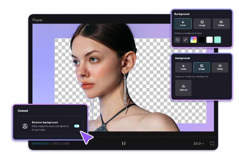 O aplicativo conta com a funcionalidade de remover o fundo do vídeo e substituir por algum fundo personalizado.