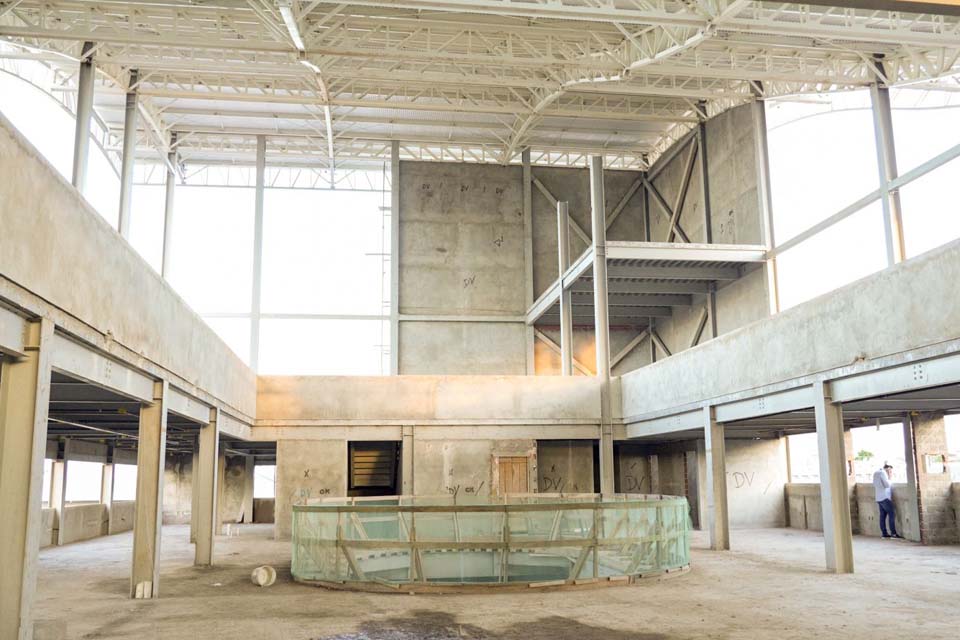O prédio principal já está totalmente coberto, restando apenas as áreas de embarque e desembarque. Estão em andamento as redes hidráulica e elétrica, pintura com acabamentos e a preparação para o forro. “Depois nós vamos entrar com o acabamento, com piso de granito que nós estamos pedindo, e com forro, porque tem vários tipos, principalmente com o forro ecológico. Em janeiro iniciamos o trabalho na parte externa, com arruamento, meio-fio e calçadão”, explicou o engenheiro responsável, Marcos Pires, durante a visita do prefeito.