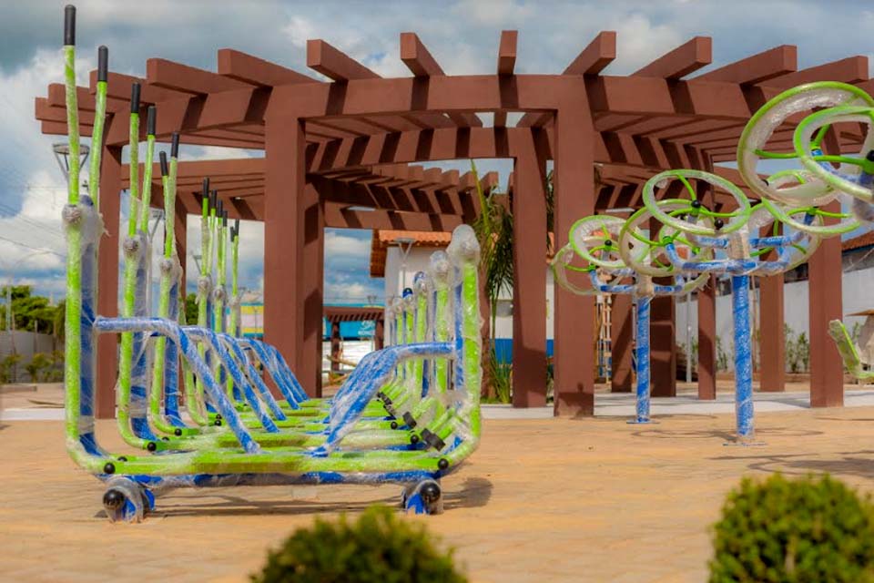 O local foi contemplado com calçadas de concreto, jardinagem, luminárias, bancos, paisagismo, academia ao ar livre, playground, gangorras, pergolados e banheiros.