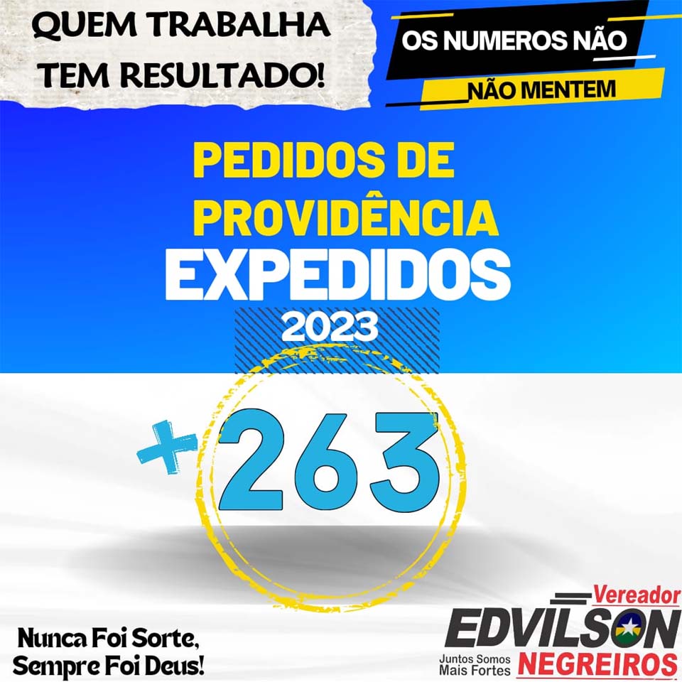Porto Velho, RO – O vereador Edwilson Negreiros, do PSB, desempenhou um papel ativo em 2023, apresentando 263 Pedidos de Providência à Prefeitura da Capital. Dos requerimentos, 115 foram prontamente atendidos pelos diversos órgãos municipais, especialmente pelas pastas de Obras (Semob), Serviços Básicos (Semusb) e Empresa de Desenvolvimento Urbano (EMDUR). Além disso, o vereador encaminhou Ofícios à Secretaria de Trânsito (Semtran), Agricultura, Pecuária e Abastecimento (Semagric) e Secretaria Municipal de Meio Ambiente (Sema). Sua assessoria de Imprensa veiculou 117 matérias ao longo do ano relatando suas atividades.