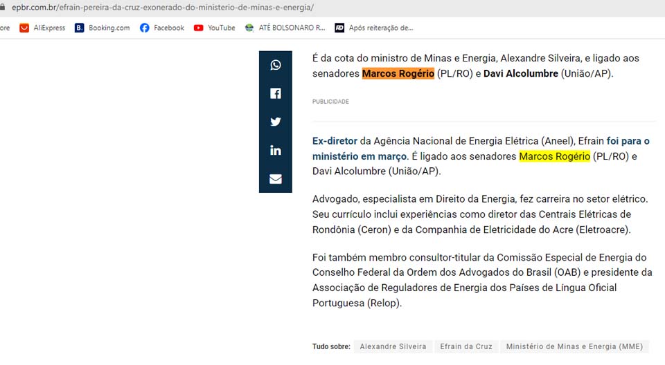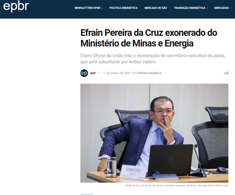 Porto Velho, RO – De acordo com a agência EPBR, especializada em notícias de energia e política energética, nesta quinta-feira (11/1), o Diário Oficial da União publicou a exoneração de Efrain Pereira da Cruz do cargo de secretário-executivo do Ministério de Minas e Energia. A surpreendente mudança resultou na nomeação de Arthur Valério, que anteriormente liderava a assessoria jurídica do ministério.