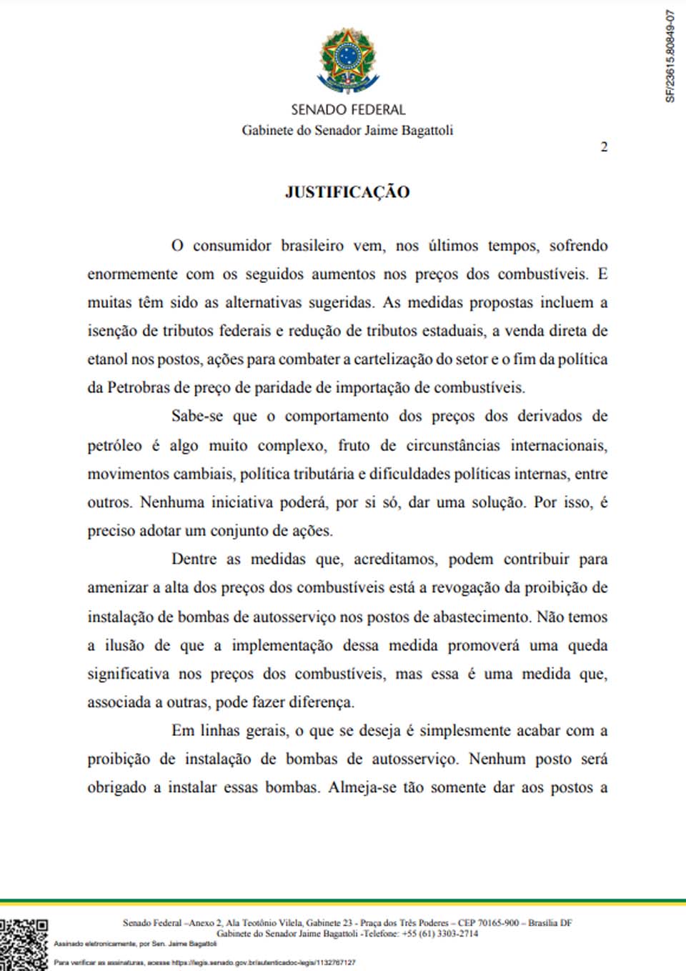 O senador destaca que a medida tem o potencial de atenuar os impactos da constante elevação dos preços dos combustíveis, proporcionando "mais flexibilidade e economia para os consumidores". Bagattoli também ressalta que as melhorias tecnológicas nos equipamentos tornam o abastecimento mais seguro, inclusive para os modelos mais recentes de veículos híbridos e elétricos.