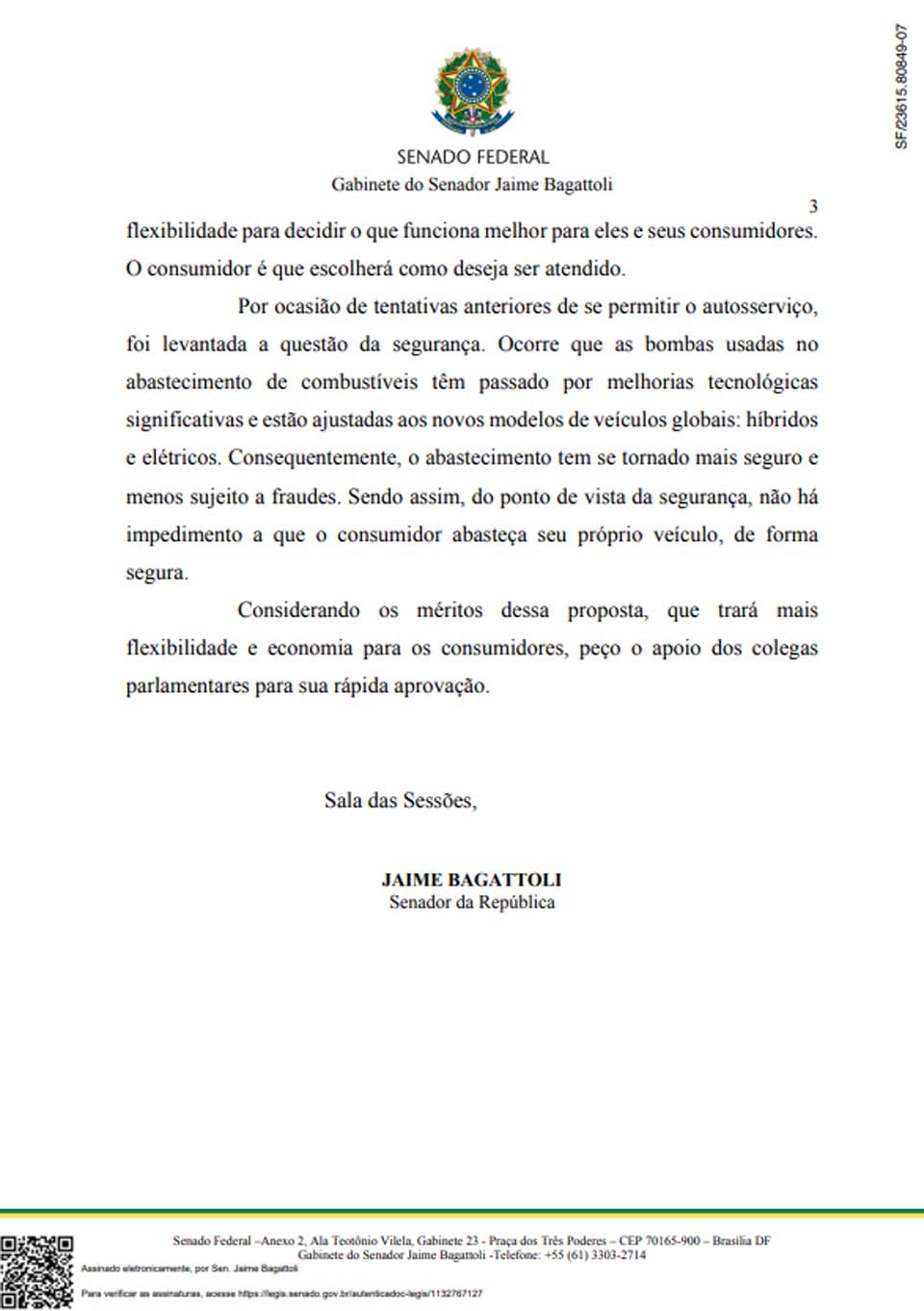 "O abastecimento tem se tornado mais seguro e menos sujeito a fraudes. Sendo assim, do ponto de vista da segurança, não há impedimento para que o consumidor abasteça seu próprio veículo, de forma segura", explica o senador.