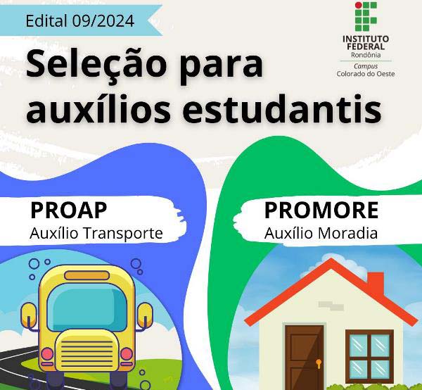 O Instituto Federal de Educação, Ciência e Tecnologia de Rondônia (IFRO), Campus Colorado do Oeste, abriu o processo de seleção para dois tipos de auxílio financeiro para estudantes da própria unidade: o Programa de Auxílio à Permanência (Proap) e o Programa de Auxílio à Moradia (Promore), para o ano de 2024.
