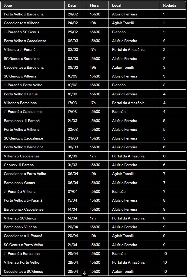 A Federação de Futebol do Estado de Rondônia (FFER) atualizou a tabela do Campeonato Rondoniense 2024. A tabela precisou de alteração após a suspensão do Real Ariquemes por duas temporadas.