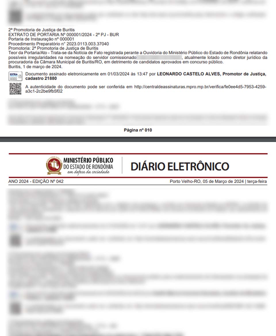 O procedimento tem como objetivo investigar possíveis irregularidades na nomeação de determinado servidor comissionado, atualmente lotado como diretor jurídico da Procuradoria da Câmara Municipal de Buritis. Isto, supostamente em detrimento de candidatos aprovados em concurso público.
