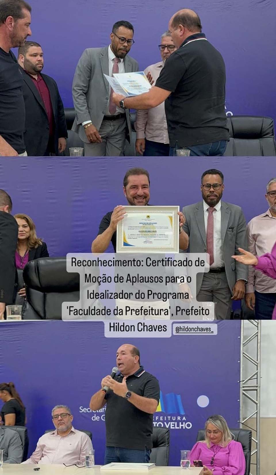O legislador não apenas prestigiou a cerimônia, mas também teve um papel fundamental ao entregar um Certificado de Moção de Aplausos ao prefeito Hildon Chaves, sem partido, o idealizador do programa.