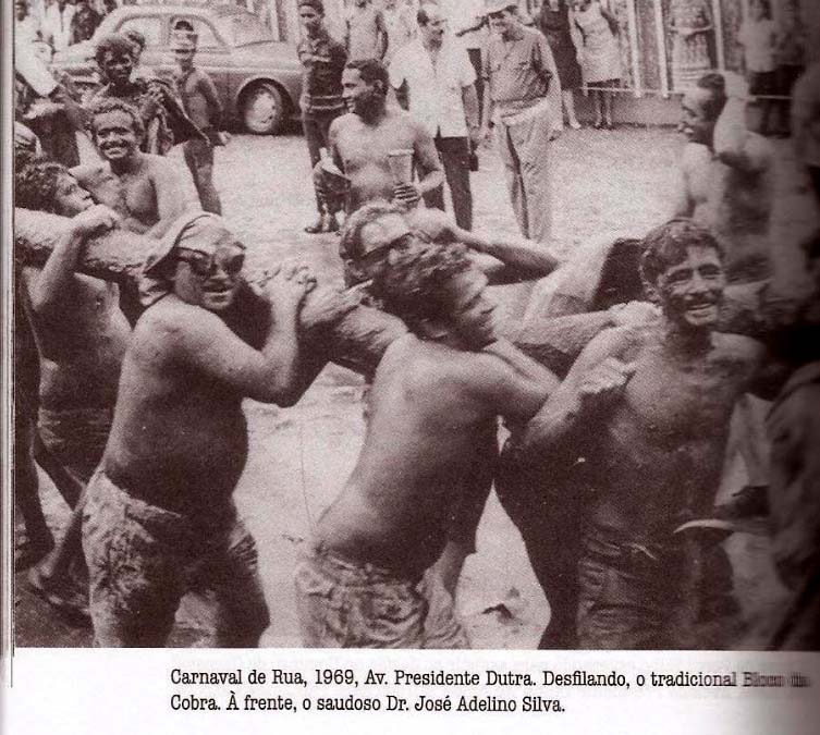 Todos sujos – o melhor seria “imundos” – eles foram a grande atração do desfile, e daí em diante, todos os carnavais eles vinham, tropeçando de tanta bebida. Eram os “cobreiros”, do “bloco da cobra”.