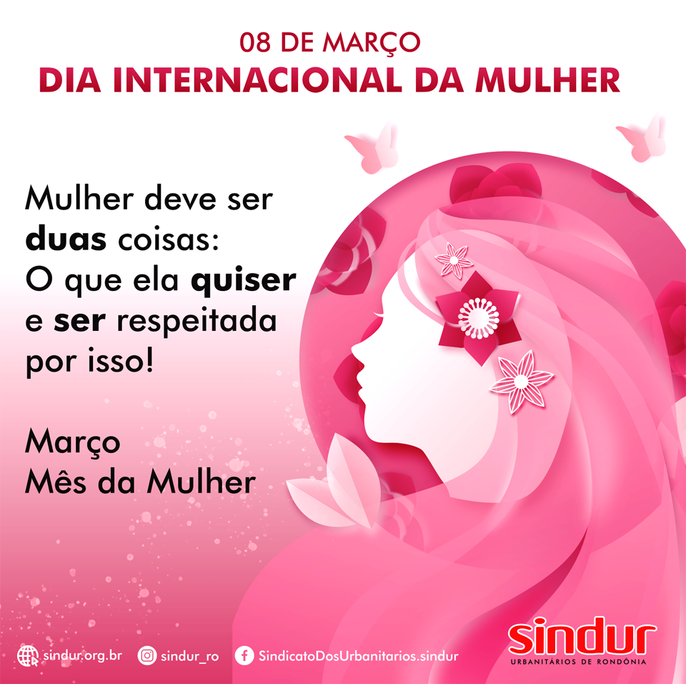 Porto Velho;RO - O Sindicato dos Urbanitários de Rondônia-SINDUR, homenageia as trabalhadoras urbanitárias e todas as mulheres, no Dia Internacional da Mulher, comemorado neste dia 8 de março, pela força,dedicação e luta por melhores condições de trabalho e igualdade.