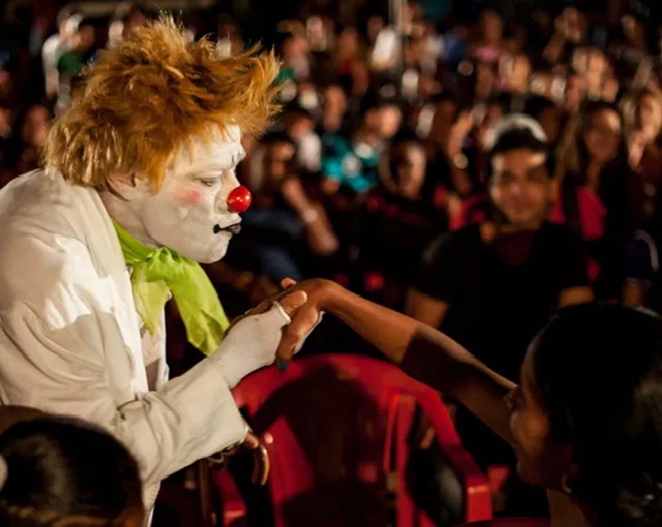 🔹Espetáculo Circense “Silêncio Total – Vem Chegando um Palhaço” 🎪com o Palhaço XUXU, interpretado pelo ator Luiz Carlos Vasconcelos.