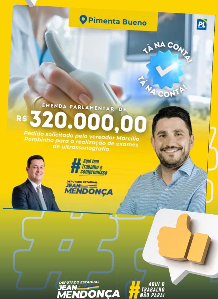A secretaria municipal de saúde de Pimenta Bueno recebeu mais uma ação do deputado Jean Mendonça (PL) através de emenda parlamentar individual no valor de R$ 320 mil reais que serão destinados para a aquisição de exames de ultrassonografias.