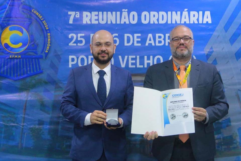 Os juízes Sérgio William Domingues Teixeira, da Vara de Penas e Medidas Alternativas (Vepema) e Bruno Sérgio de Menezes Darwich, titular da Vara de Execuções Penais da Justiça de Rondônia, receberam, nesta sexta-feira, a medalha do Conselho Nacional dos Secretários de Estado da Justiça (Consej).