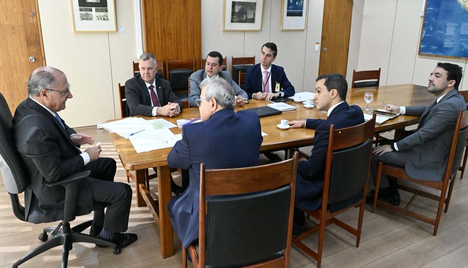 Em uma movimentação significativa no cenário político e econômico de Rondônia, o deputado federal Lúcio Mosquini, acompanhado dos empresários do estado, Eugênio Odilon Ribeiro e Eugênio Odilon Ribeiro Junior e Osias Santana, que são presidente, vice-presidente e assessor executivo, respectivamente, do grupo Cairu, encontrou-se hoje com o vice-presidente da República, Geraldo Alckmin, para discutir o futuro fiscal de Rondônia diante da iminente reforma tributária.