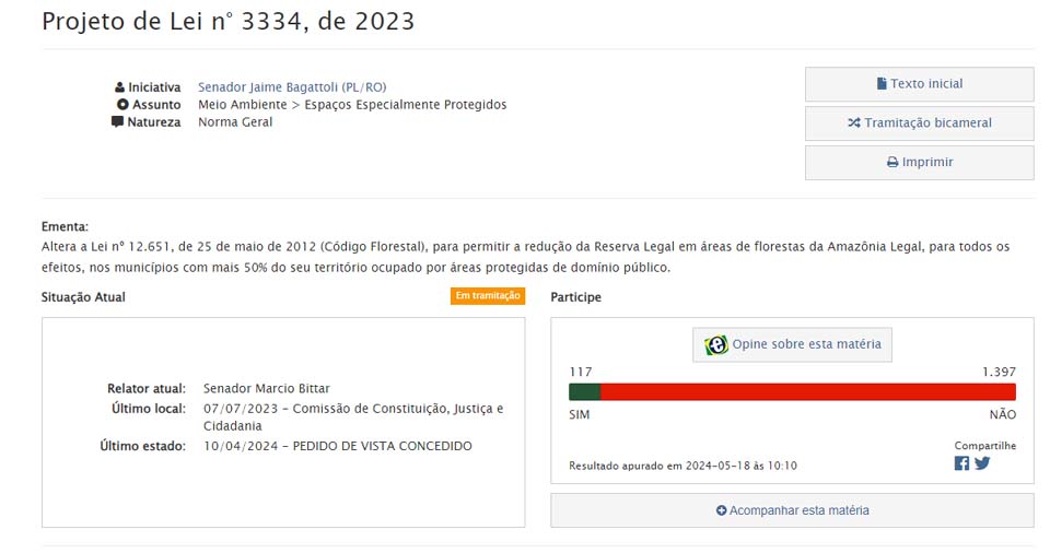 Proposta de Bagattoli é majoritariamente execrada pela população brasileira no site do Senado / Reprodução