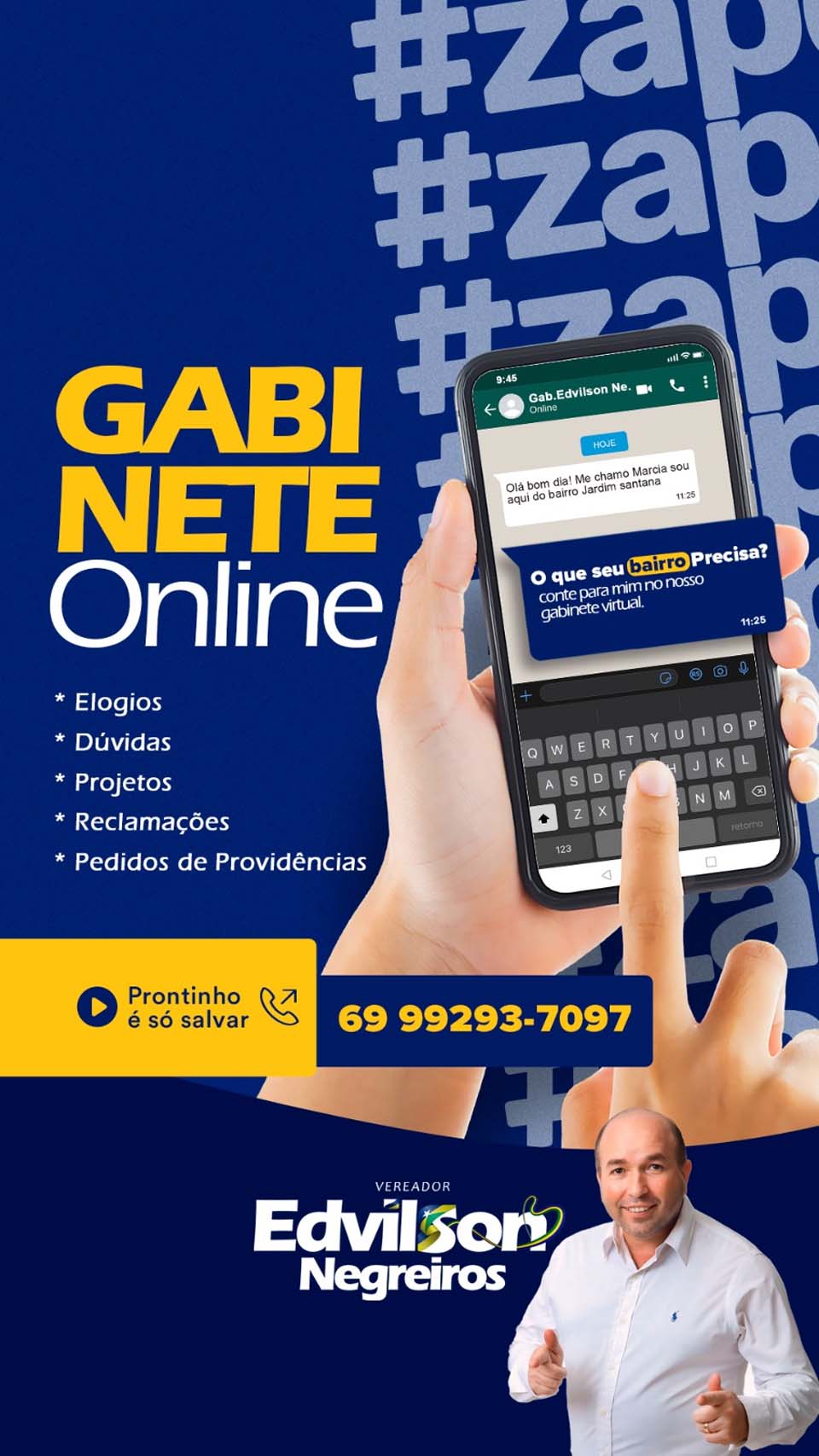 Porto Velho, RO – Desde o mês de abril de 2021, o vereador Edwilson Negreiros, membro do PSDB, iniciou o atendimento aos habitantes de Porto Velho por meio do "Gabinete Virtual".