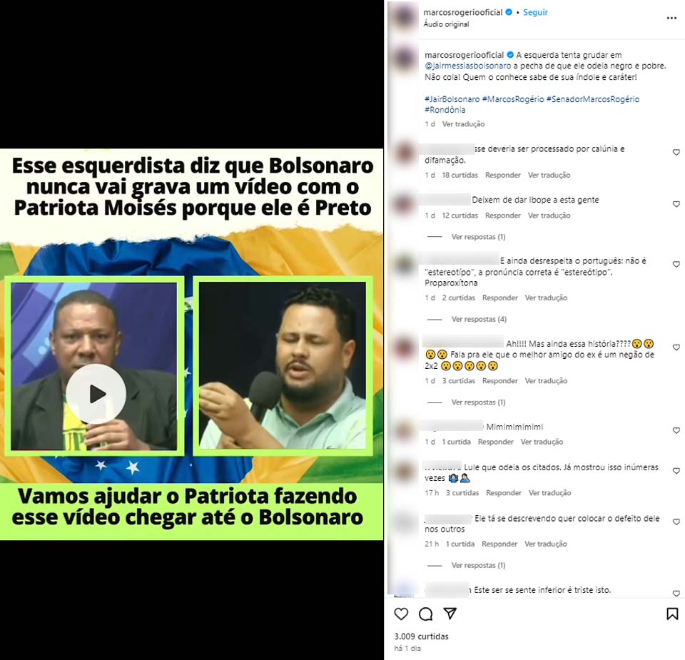 Lado outro, o senador Marcos Rogério, através de uma postagem em redes sociais, sobre outro assunto, defendeu Bolsonaro de uma fala de Samuel Costa com outro conservador.