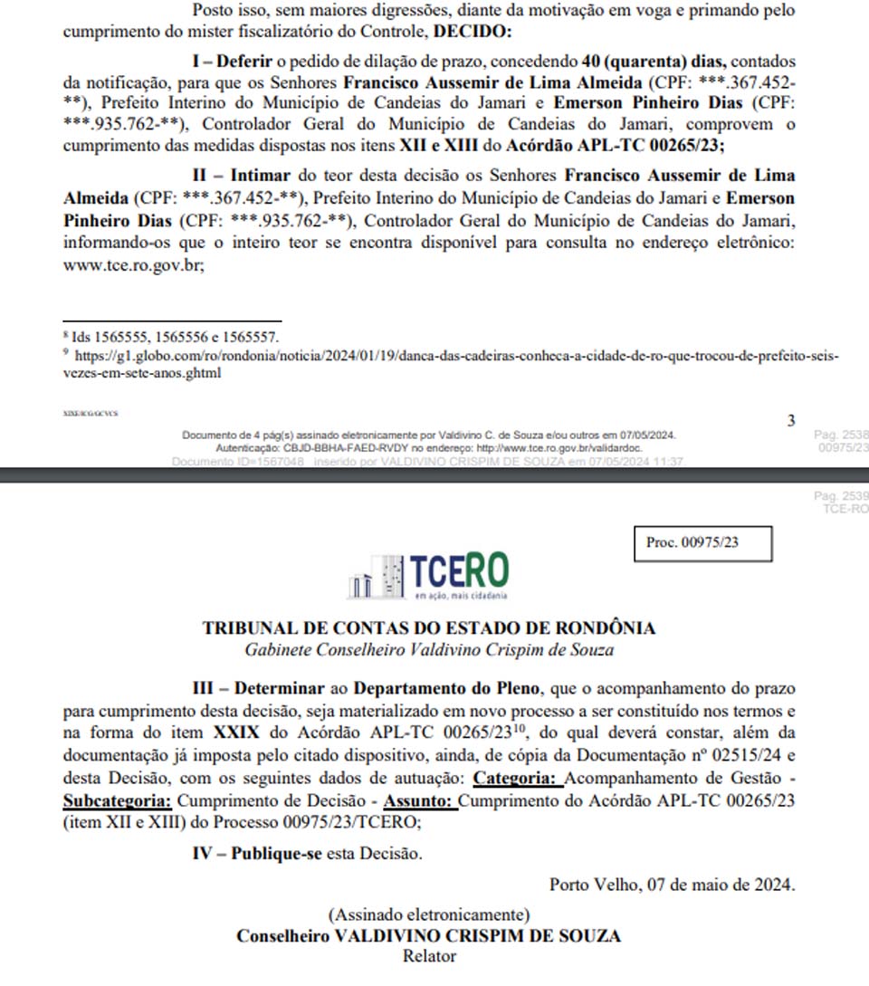Porto Velho, RO – Em uma recente deliberação, o Tribunal de Contas do Estado de Rondônia (TCE/RO) aprovou uma extensão de prazo para o município de Candeias do Jamari, possibilitando mais 40 dias para que a administração local cumpra com as obrigações impostas por decisões anteriores da corte. Esta decisão, assinada pelo Conselheiro Valdivino Crispim de Souza, destaca a necessidade de flexibilidade diante das circunstâncias excepcionais vividas pela gestão municipal liderada pelo Prefeito Interino Francisco Aussemir de Lima Almeida.