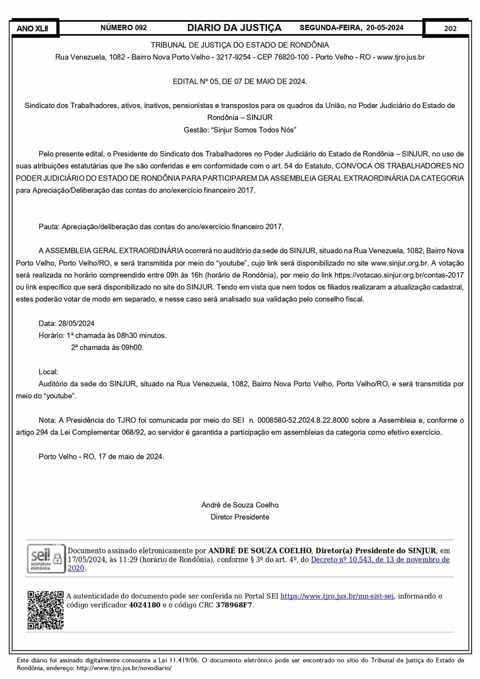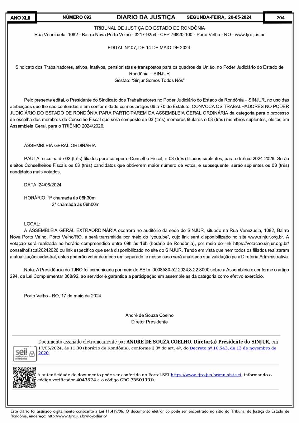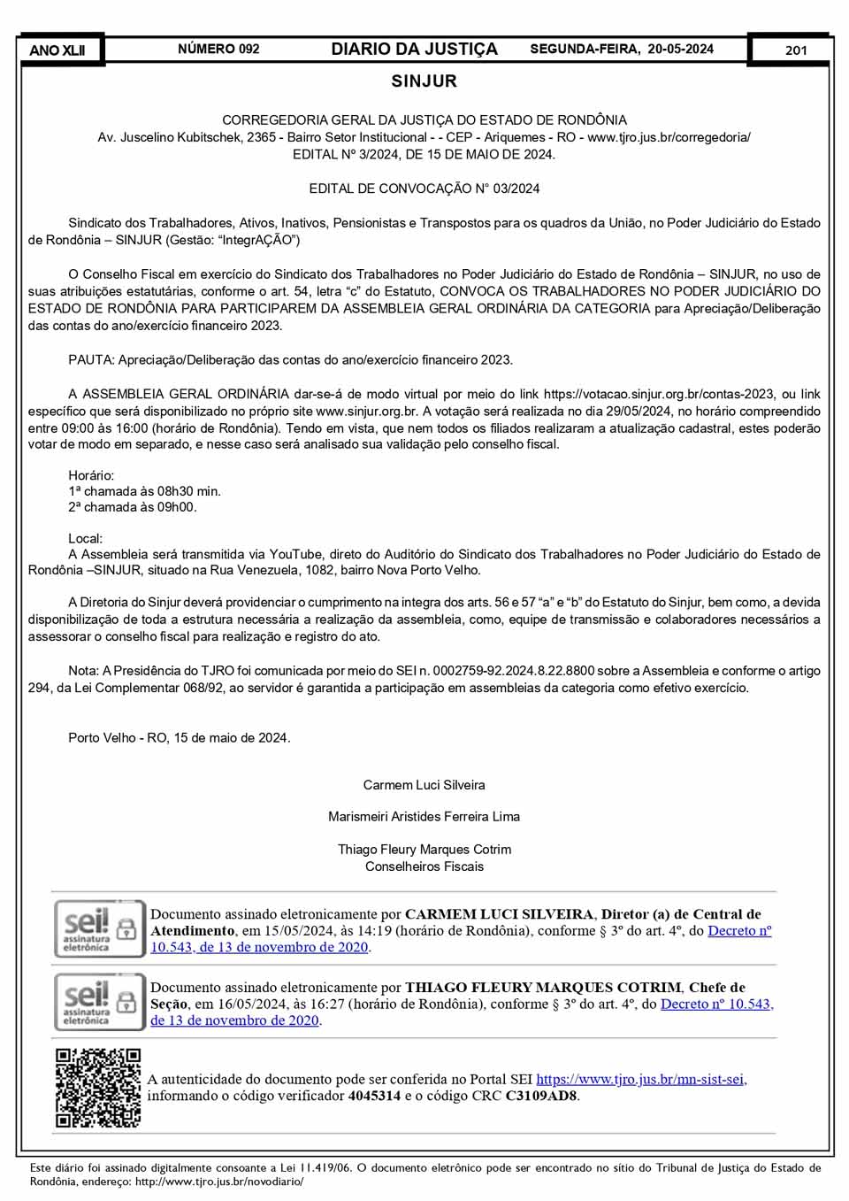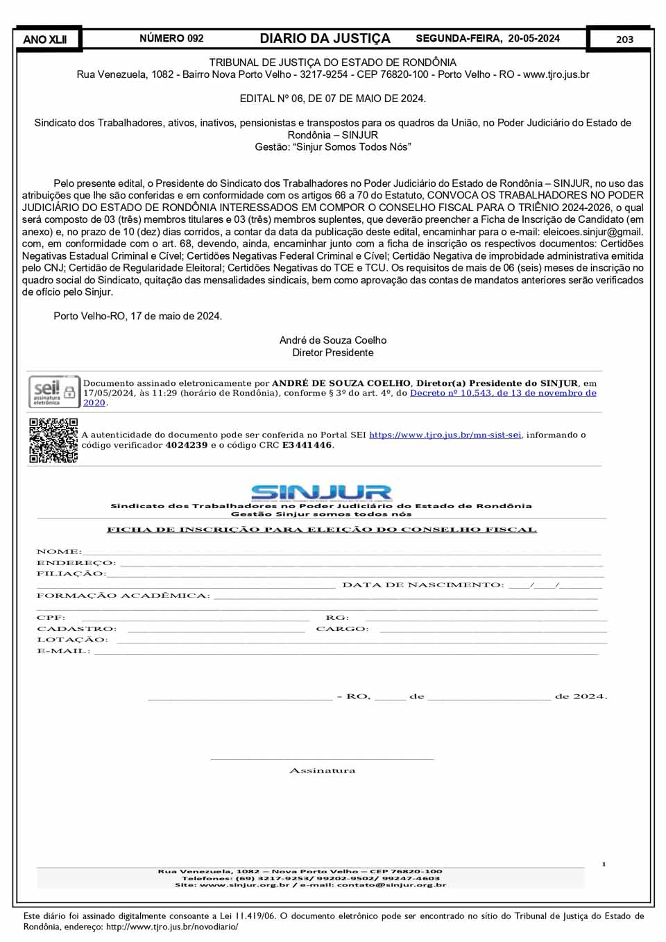 SINJUR - Editais nº 03, 05, 06 e 07/2024