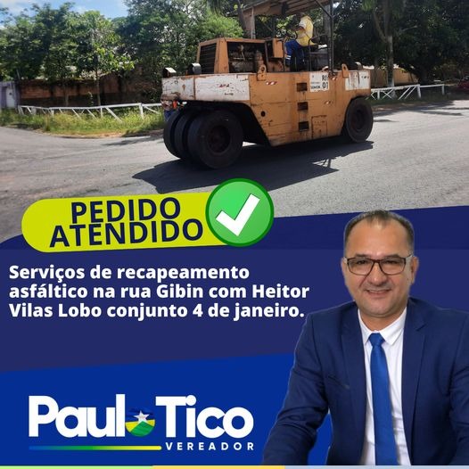 Porto Velho;RO - A pedido do Vereador Paulo Tico, a equipe da Semosb realizou serviço de recapeamento asfáltico na rua Gibin com Heitor Vilas lobos no Bairro 4 de Janeiro .