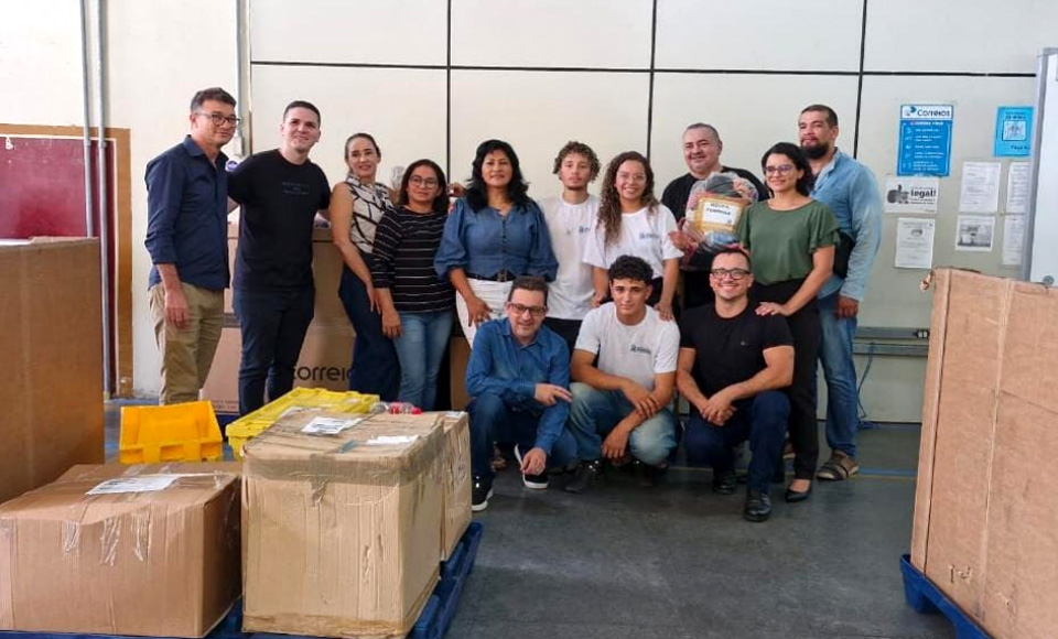 Equipe da Alero que trabalhou na organização dos donativos (Foto: Moisés Santiago/Correios)