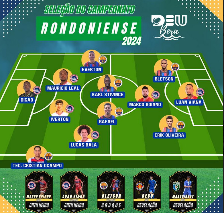 A equipe do Deu Bera, projeto vinculado a Universidade Federal de Rondônia (Unir), elegeu a seleção do Campeonato Rondoniense 2024, competição que encerrou na última quarta-feira (5) com o título do Porto Velho. A equipe jornalística formada por 16 pessoas, todas da Unir, produziu conteúdos diários sobre as seis equipes durante todo o Estadual e transmitiu todos os jogos em Porto Velho.